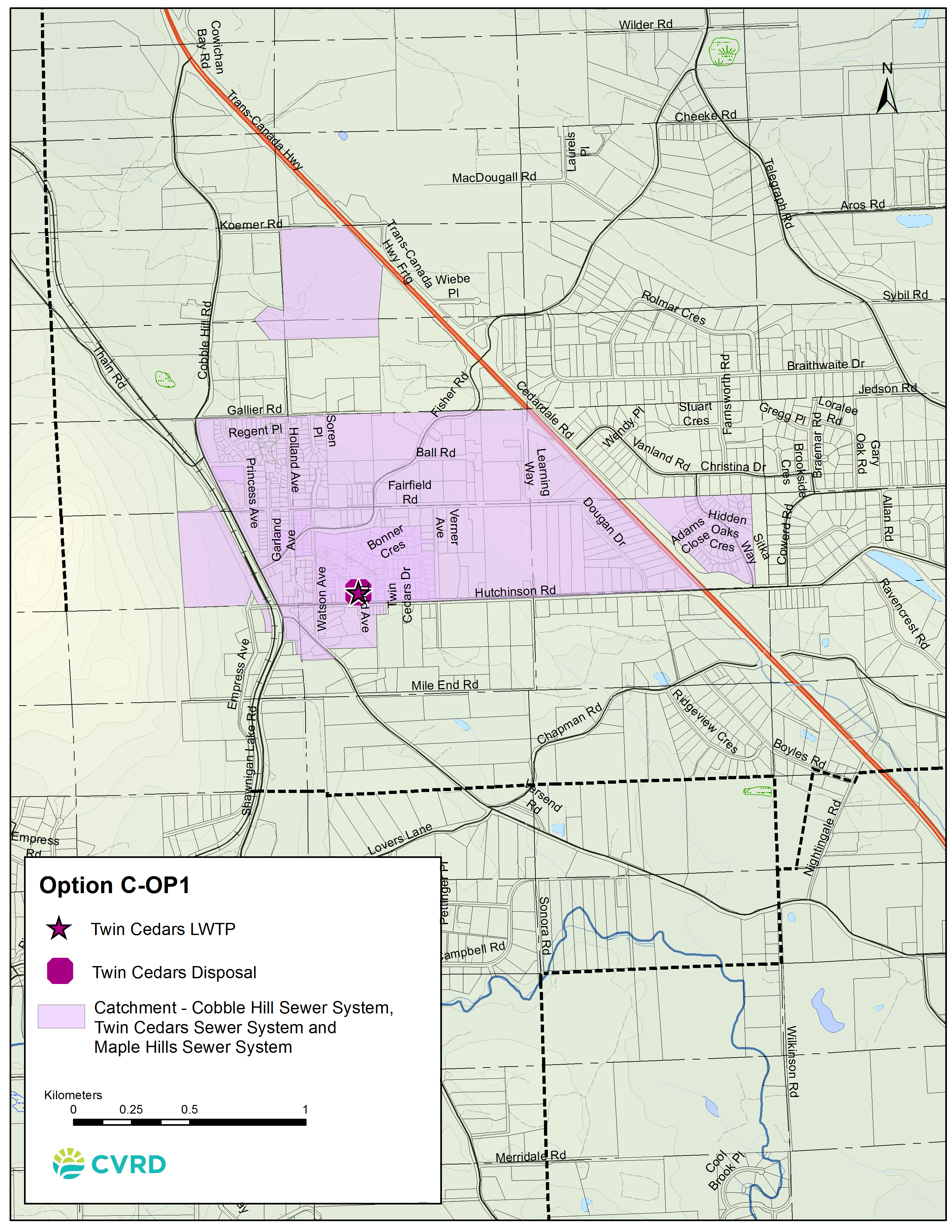 Cobble Hill Village Containment Boundary - Twin Cedars, Cobble Hill (Galliers Rd), Maple Hills, and potential users located between the Maple Hills, Galliers Rd, and Twin Cedars residential developments |